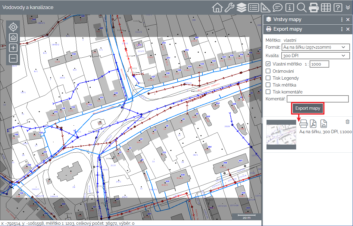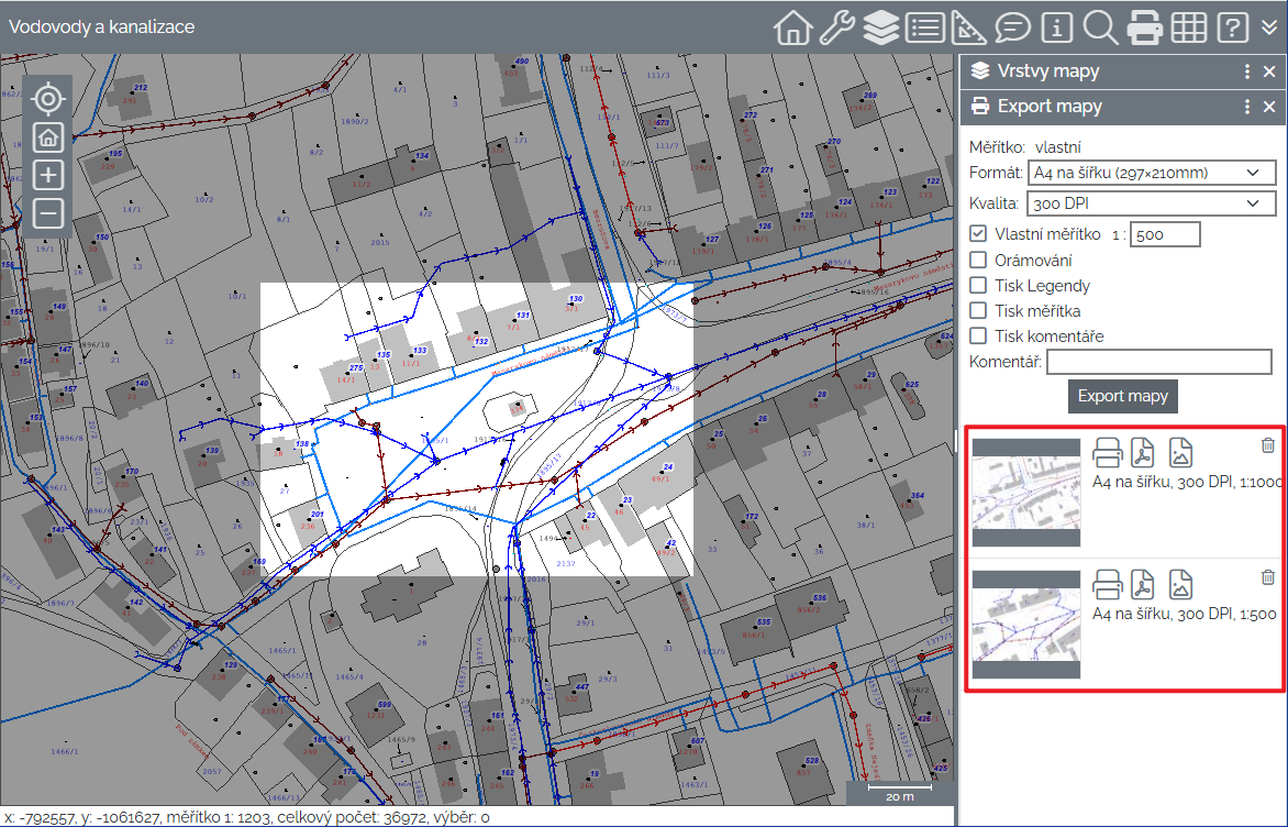 ❸ v základním nastavení je měřítko exportované mapy shodné s měřítkem zobrazeného mapového výřezu