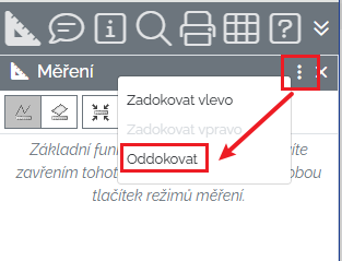 Měření - zobrazí / skryje panel s nástroji pro měření v mapovém okně