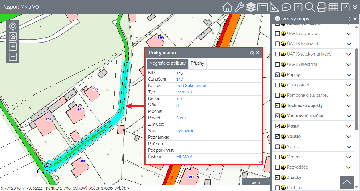 Info - zobrazí / skryje panel pro zobrazování informací o vybraných objektech včetně jejich příloh