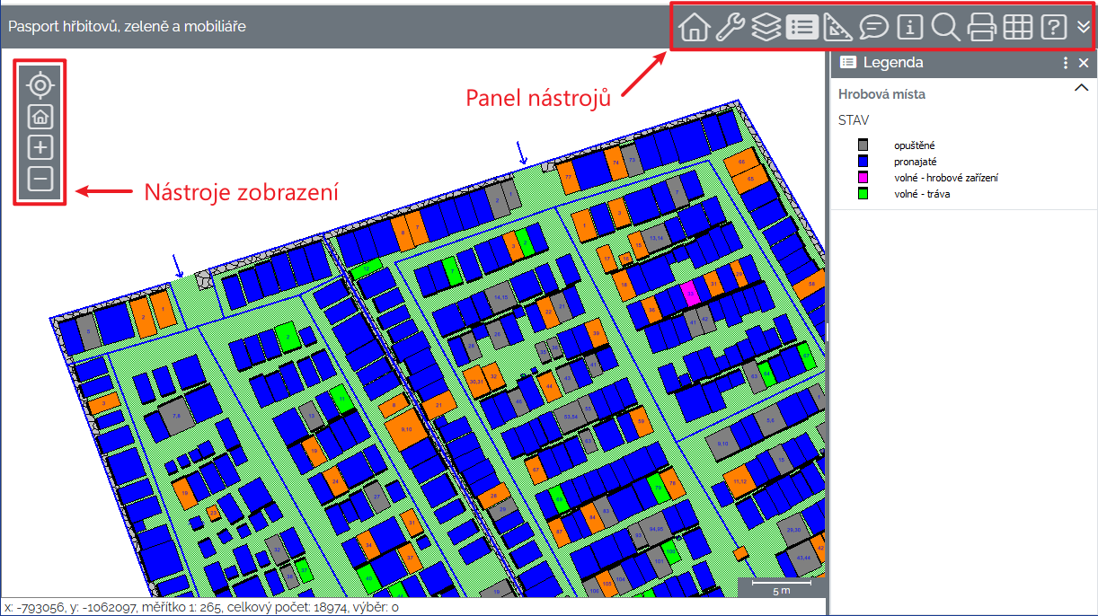 Info - zobrazí / skryje panel pro zobrazování informací o vybraných objektech včetně jejich příloh