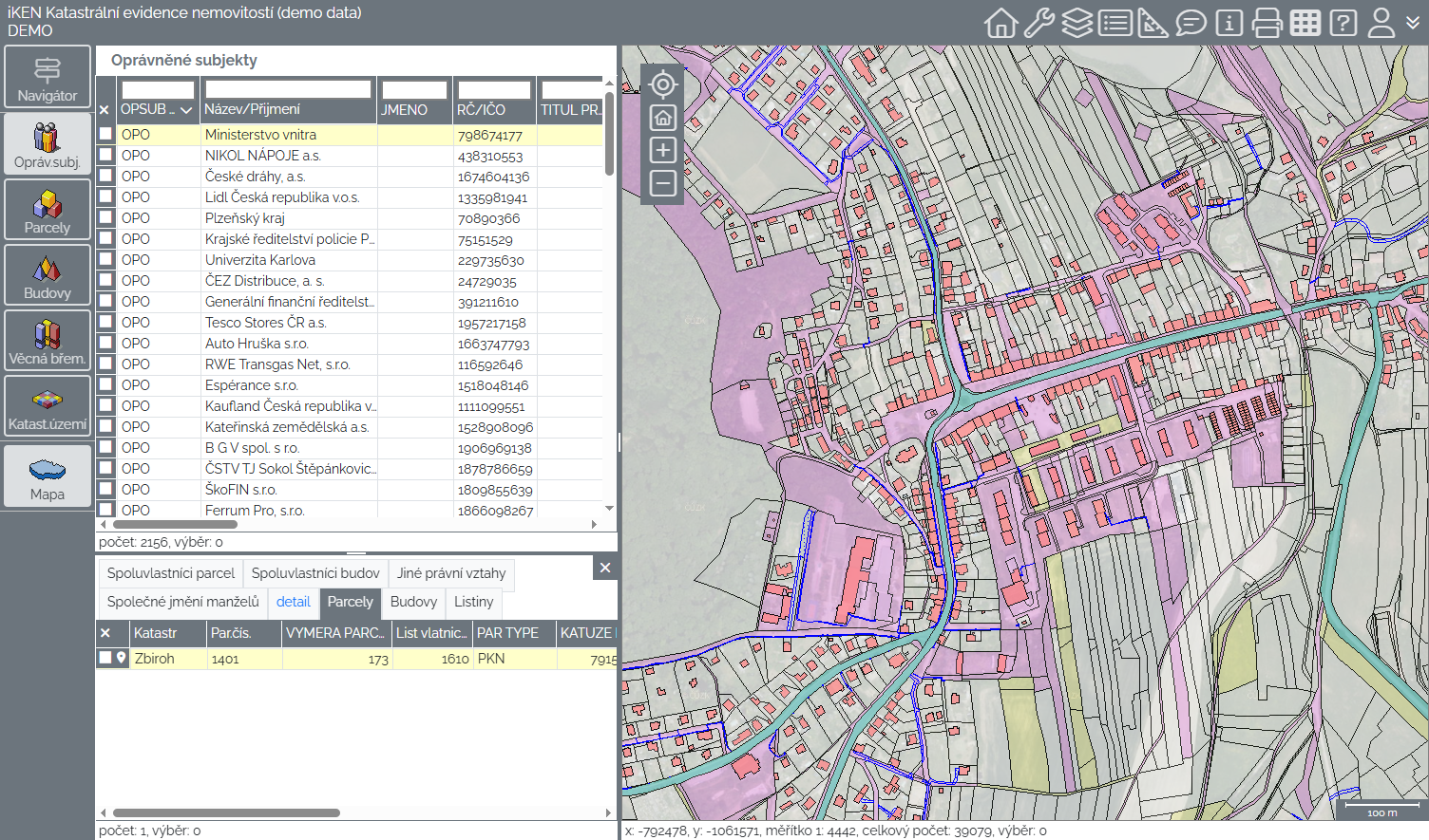 výchozí zobrazení aplikace iKEN (Katastrální Evidence Nemovitostí)