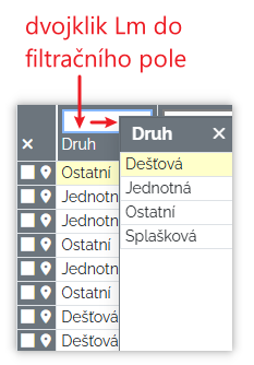 do prostoru Filtračního pole vyvolá Výčet hodnot, tj. tabulku se zobrazením unikátních hodnot v daném sloupci.